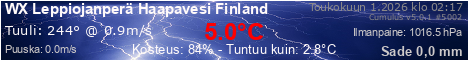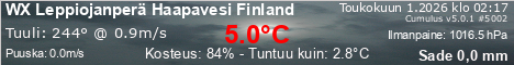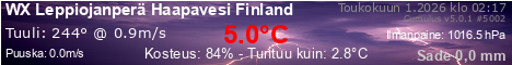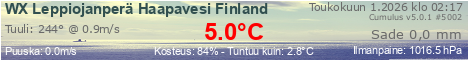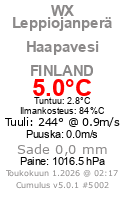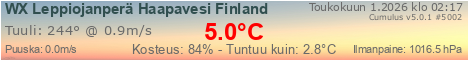 Voit käyttää sääbanneria sivullasi säätilan näyttämiseen Jussilan sääasemalta. Kopioi bannerin alla oleva koodi ja liitä se sivusi HTML koodiin haluamaasi paikkaan. Haluamme kuitenkin tietää millä sivulla bannereitamme käytetään, ilmoitathan siitä meille Chat ohjelman kautta.